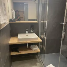 호텔 직원들은 매우 친절하고 도움이 많았습니다. 위치도 훌륭했습니다. 하지만 체크인 시간이 늦어서 그린델발트 터미널에 도착했을 때는 비가 내리고 있었습니다. 칠흑같이 어두워서 방을 찾을 수가 없었습니다. 좀 답답했습니다. 1층에 묵는 것도 추천하지 않습니다. 꿈결 같은 언덕을 볼 수 없으니까요.