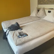 저희 방은 2층에 있었습니다. 호텔이 2단계 확장 공사 중이었던 것 같아 창문 밖으로 비계가 보였습니다. 호텔에는 에어컨도 없었습니다. 8월 중순, 폭염이 기승을 부리던 시기에 체크인했는데, 직원들이 선풍기만 제공해 주었습니다. 다행히 밤은 포근해서 견딜 수 있었습니다. 방도 아주 기본적인 수준이었습니다. 하룻밤에 2,000위안이 넘는 가격에 침대 옆 탁자조차 없었습니다. 스위스의 높은 생활비는 정말 한심할 정도였습니다. 그나마 다행인 점은 기차역 바로 앞이라는 편리한 위치와 친절한 직원들이었습니다.