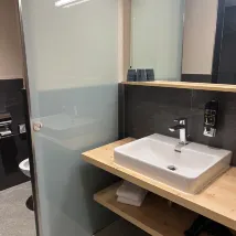 객실 테라스에서 전망은 좋았지만 역에서 조금 떨어져 있었습니다. 욕실에 문이 없어서 샤워 후 옷을 갈아입기가 불편했습니다. 객실에 티슈 상자조차 없었습니다. 아침 식사는 다양하지는 않았지만 꽤 괜찮았습니다.