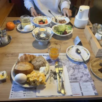 역에서 가깝지만, 경사진 길을 조금 걸어야 해서 짐을 끌고 가기에는 다소 힘들었습니다. 방은 넓고 아름다웠으며, 테라스 전망은 최고였습니다. 그린델발트의 산과 샬레 풍경을 한눈에 볼 수 있었습니다. 호텔 조식당 분위기가 좋았고, 음식은 간단했지만 맛있었습니다.