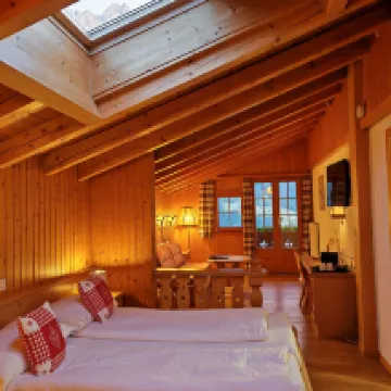 목조 구조의 호텔은 정말 아늑하고 편안했습니다. 꽃으로 가득 찬 발코니에서는 아이거봉이 바로 눈앞에 펼쳐져 환상적인 전망을 자랑했어요. 예약했던 스위트룸은 거실 하나와 침실 하나로 구성되어 있었는데, 객실이 정말 넓어서 좋았습니다. 이번 여행에서 가장 기억에 남는 호텔이었어요.
