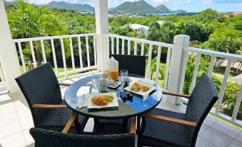 The pièce de résistance of this rental is undoubtedly the wrap-around balcony. Step outside and be greeted by breathtaking horizon views of the Caribbean Sea and rolling hills in the distance. Lounge on comfortable outdoor furniture as you sip your morning coffee or unwind with a glass of wine as you watch the sun dip below the horizon in a blaze of colors.