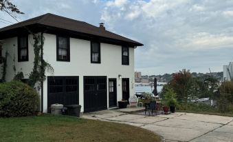This unique place has a style all its own. renovated carriage house apartment overlooking the Thames River. Spacious and bright with loads of natural light. Perfect for a couple but has a pull out couch for another person. The sunsets are amazing. Outdoor patio and grill. 7 minutes to downtown Mystic and Stonington. Loads of area beaches. Within walking distance to the famous "Pauls Pasta" on Thames Street.About pets:Pets allowed: dogs less than 50 lbs per pet (limit one pet total).About checkOut:Check out before 11:00 AM.About children:Adults only.About customRules:pets are allowed but there is a 100 fee.About checkIn:Check in after 4:00 PM.About smoking:Smoking is not permitted.About minBookingAge:Minimum age to rent: 21.About events:No events allowed.