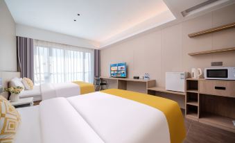 這家酒店真的超出預期!一進房間就被現代高級的裝修戳中審美——暖調燈光襯得空間温馨又有質感,兩張床的床品軟彈舒適,躺下就不想起來。窗邊的沙發區採光絕佳,白天曬着太陽歇腳超愜意,電視、儲物區這些設施也都齊全又實用。