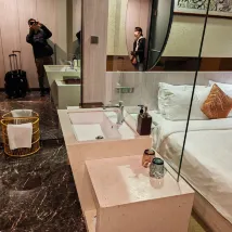 이제 방은 좋았습니다(얼마나 답답할지 모르고 비용을 지불했기 때문에 창문이 없었습니다). 욕실은 매일 청소했는데도 냄새가 나고 샤워기 물이 유리를 통해 흘러나와 방 전체가 젖어 있었습니다. 싱크대가 있는 부분과 샤워실에서 나와서 싱크대가 있는 부분은 사실 상당히 불쾌하고 불편했습니다. 하지만 다른 건 다 괜찮은데...