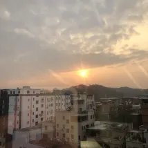 사진은 이른 아침 창밖에서 찍은 일출 사진으로 남쪽의 따뜻한 기후는 매우 쾌적하며 호텔 직원은 매우 예의 바르고 친절하며 인상이 매우 좋습니다.