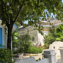 집의 외관은 지중해풍 디자인으로, 내부 바닥 타일도 지중해풍 디자인으로 이국적인 느낌을 줍니다.
