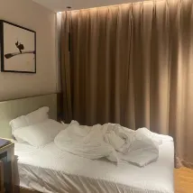 침대 바로 옆에 작은 방, 화장실, 욕실이 있습니다. 화장실과 욕실에 문이 하나 있어 모든 소리가 들립니다. 아침식사는 없고 3-in-1 봉지에 커피만 줍니다. 방에서는 시내가 보이는데 실제로는 중국 주택가의 전망이었습니다. 우리는 캔톤 전시회 기간 동안 방문했는데 방당 가격은 약 800 위안이었습니다. 현재 모든 곳의 가격이 부풀려져 있다는 것을 이해하지만 여기서는 너무 높습니다. 같은 가격으로 우리는 훨씬 더 좋은 호텔에 묵었습니다.