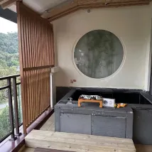 방 장식도 아름답고, 환경도 아름답고, 서비스도 괜찮습니다. 외부 욕조에는 성인 3명이 동시에 들어갈 수 없습니다. 그래서 방에 인덕션 쿠커는 있지만 주방 도구는 없습니다😂