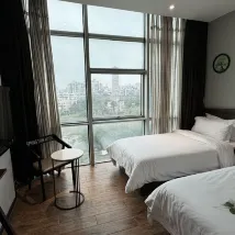호텔은 얀탕에 위치해 있습니다. 지하철역에서 도보로 조금만 걸어가면 됩니다. 맥도날드, KFC, 루킨커피, 스타벅스가 모두 아래층에 있습니다. 매우 편리합니다. 그래서 우리는 창문이 없는 작은 방을 예약했습니다. 우리가 들어갔을 때 특별한 냄새는 없었습니다. 유일한 작은 단점은 뜨거운 물이 조금 느리게 나온다는 점이었습니다. 프런트 데스크 서비스도 매우 좋았고, 금세 체크인이 가능했습니다. 마지막으로 이 호텔을 강력히 추천합니다. 호텔 프로젝터를 이용해 찍은 생일사진을 첨부하였습니다.