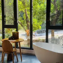 분위기도 좋고, 서비스도 훌륭했습니다. 다만 모기가 좀 많았어요. 아침저녁으로는 시원해서 피서지로 안성맞춤입니다. 계곡 트레킹, 식물 탁본, 향 만들기 등 다양한 활동도 많았습니다. '자오샹팡'이라는 곳에서 향낭도 만들었는데, 아주 예뻤어요. 산에는 귀한 약초들이 많다고 합니다. 호텔에서 제공하는 닭고기와 생선 요리도 훌륭했습니다.