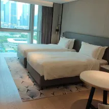 ICC环贸天地 상층에 위치하여 지리적 이점과 편리한 교통을 자랑합니다. 경치도 매우 아름다웠습니다. 객실 위생은 좋았으나, 비치된 슬리퍼와 수건은 다소 어수선하게 정돈되어 있었습니다. 체크인 시간이 다소 늦었고 청소도 예상보다 오래 걸렸습니다. 대신, 로비 직원분들은 모두 친절했습니다. 시설은 완비되어 있었으며, 레지던스 투숙객 전용 피트니스룸과 라운지가 있어 좋았습니다. 냉온음료 등 다양한 종류의 음료도 비치되어 있었습니다.