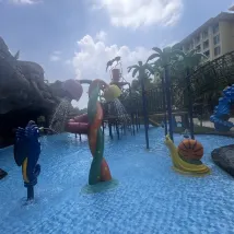 ❌호텔 전체적인 즐길 거리는 평범한 편이었습니다. 비록 3개의 수영장이 있었지만, 첫 번째 작은 어린이 풀은 영유아용이었고, 두 번째 큰 수영장은 수영모가 필수이며 별다른 시설 없이 순수하게 수영만 할 수 있는 곳이었습니다. 세 번째 대형 슬라이드가 있는 수영장은 어른들은 이용이 금지되어 있었고, 물도 더러웠습니다.