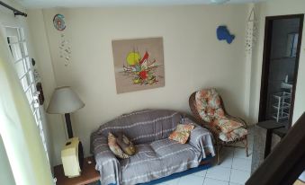 Small townhouse for up to SEVEN ADULTS, 70 meters from the beach, with two bedrooms at the top, living room, kitchen and a bathroom at the bottom, barbecue, parking space for two cars, with balcony in the front room overlooking the beach. Great sea breeze. City and intercity bus with stop in front. Nearby markets. Far from the center about six kilometers. Has one more house on the ground, which is also rented for season. No swimming pools or pets allowed.