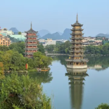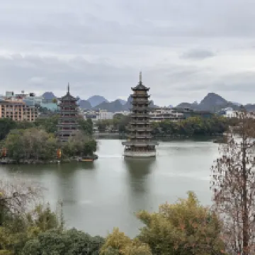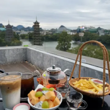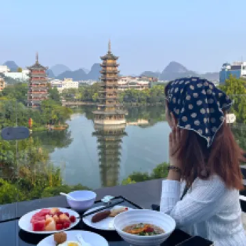 이번 계림 여행의 경험 만족도를 한층 더 끌어올려 준 아주 중요한 요소가 있었어요! 호텔은 양강사호(两江四湖) 풍경구와 상비산(象鼻山) 풍경구 사이에 위치해 있답니다. 왼쪽으로 50m만 가면 일월쌍탑(日月双塔)이 바로 보인답니다!! 이곳에 묵으면 계림의 3대 랜드마크 명소에 둘러싸인 기분을 만끽할 수 있어요. 위치가 정말 환상적이라 어디든 가깝게 이동할 수 있답니다. 忆카페(Yikafei) 전망 레스토랑은 이중 뷰를 자랑하며, 일월쌍탑과 상비산을 동시에 감상할 수 있어요. 커피 한 잔☕️이나 식사 한 끼🍚를 하면서도 멋진 인생샷을 건질 수 있답니다.