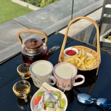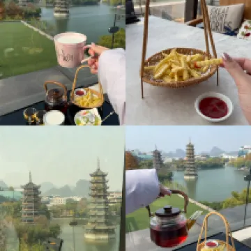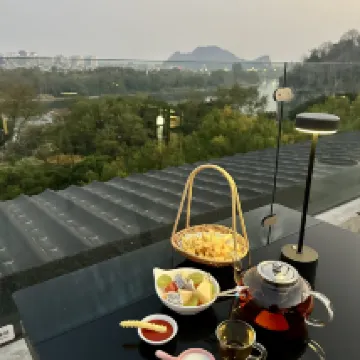 최상층 전망 레스토랑이 정말 놀라웠어요! 위아래층 모두 거대한 전망 테라스가 있어서 식사하면서 두 강 네 호수와 상비산 풍경을 감상할 수 있었고, 애프터눈 티도 정말 훌륭했어요. 특히 아침 식사로 나온 계림 쌀국수는 너무 신선해서 계속 먹게 되더라고요😄😄