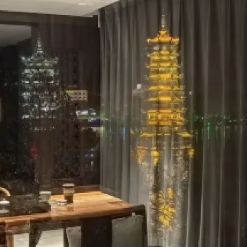 위치가 정말 최고예요! 몇 걸음만 나가면 샹산(코끼리 바위)이고, 밤에는 방에서 일월쌍탑에 불이 들어온 모습을 볼 수 있는데, 그림 같아요. 굳이 관광지에 갈 필요도 없어요. 아래층으로 내려가면 번화한 보행자 거리가 있어서 밀크티, 쌀국수, 맥주 생선 등 먹고 싶은 게 다 있고, 동시앙 거리까지도 10분밖에 안 걸려서 정말 편리해요.