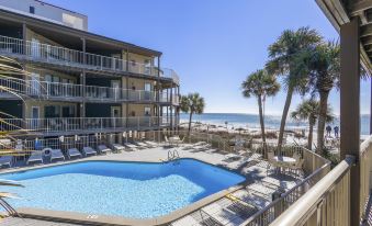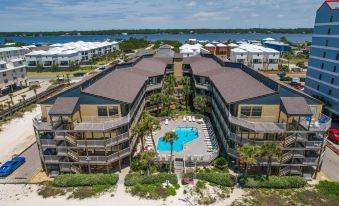 Sandpiper is a low density three story complex. Its unique V shape building and shared common area walkway in front of each condo lends to a friendly get to know your neighbor atmosphere. Family reunions, large groups of people traveling together and individual families choose this property often. The tropical courtyard, seasonally-heated swimming pool (mid-March through October, as needed) and grilling areas give Sandpiper an ambiance all its own. It is a highly requested property and has the most repeat guests.