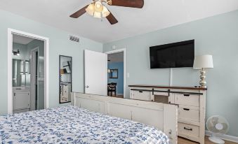 THE SPACE: Enjoy this updated condo nestled right on the beach. The living room is spacious and comfortable with a slider to the balcony. The kitchen is fully stocked with both a Keurig and regular coffee makers. For dining, there is room for 6 at the table and 4 at the kitchen bar. The master bedroom has an ensuite full bath with a tub/shower combination. The second bedroom hosts the stacked washer and dryer. The third bedroom has bunk beds for the little ones. The second bath in the hall features a tub/shower combo. There are smart TVs in the living room and all bedrooms. Please note that the TVs in the unit are Smart TVs. Cable is not included and guests will need to login to their own streaming/cable services through the TV's many apps. Wi-Fi and cable are complimentary!