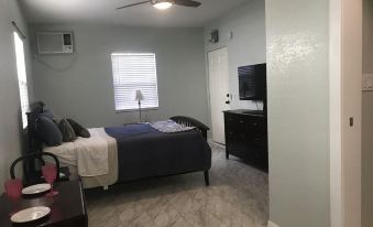 Escape to this charming Gulfport cottage just steps from the beach, restaurants, art walks, and live music. This cozy one-bedroom retreat offers a peaceful patio, a kitchen, and all the comforts of home. This Vacation cottage studio near St. Pete is ideal for couples, solo travelers, or remote workers looking to explore St. Pete and the laid-back Gulfport vibe. Walk to everything—no car needed! Quiet beachy studio cottage is located one block from the Gulfport Florida Library in the heart of the historic Art District near St. Petersburg. Lined with brick roads, surrounded by parks, and a short 5 block walk to the beach on Boca Ciega bay. Ample off street parking for up to two cars.