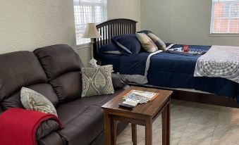The exact amount of guests MUST be disclosed at the time of reservation for insurance purposes. The studio apartment is suitable for up to 2 adult guests, but can accommodate a pack-n-play for an infant or a twin sized blow up mattress if needed.