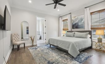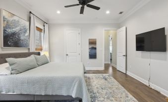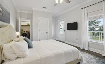Relax with the family at this peaceful home with porches upstairs and down, you can enjoy coastal breezes overlooking the ocean and gorgeous oaks in a beautiful new construction area only a 1-2 min drive from downtown restaurants, shopping, and attractions! This 3 bedroom home has spacious bedrooms, with televisions, ceiling fans, comfortable beds, and lovely decor! 2 car garage with parking for 4 and extra street parking. Walkable to the beach with beautiful finishes and easy access to downtown. Absolutely gorgeous heated pool and spa with a covered area and television outside.About pets:No pets allowed.About checkOut:Check out before 10:00 AM.About children:Children allowed: ages 0-17.About checkIn:Check in after 4:00 PM.About smoking:Smoking is not permitted.About minBookingAge:Minimum age to rent: 18.About events:No events allowed.
