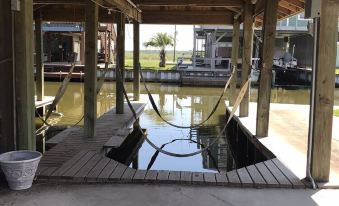 Beautiful classic Louisiana fishing cottage with 200 feet of canal frontage and your own private boathouse that includes two boat slips with lifts. The large porch is perfect for watching the boats pass by or just enjoying the coastal breezes. There's a large kitchen upstairs and a second "entertainment" kitchen downstairs that includes a pool table. Included with the house is a pellet grill, boiling pot with double burner, and an electric fryer. It also has a large commercial ice machine for your convenience.About pets:No pets allowed.About checkOut:Check out before 10:00 AM.About children:Children allowed: ages 0-17.About customRules:Swimming is not permitted in the canal. Anyone swimming in the canal assumes all associated risk. There are alligators and alligator gar in it..Please load and start dishwasher before checkout and leave unused beds unmade.,Please take all trash cans to the road when you leave. Trash is picked up early Monday morning (around 6:00am)..About checkIn:Check in after 3:00 PM.About smoking:Smoking allowed: in designated areas.No smoking or vaping indoors.About minBookingAge:Minimum age to rent: 25.About events:No events allowed.