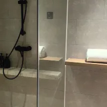 바다 바로 옆에 있고 매우 조용한 새로운 객실입니다. 강력하고 뜨거운 물이 나오는 욕실이 있어서 좋아요
