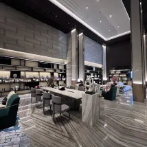 호텔 로비는 매우 높은 층으로, 평온한 시간을 즐길 수 있는 자유로운 공간을 갖추고 있습니다.