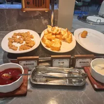 저는 그것이 매우 좋다고 생각합니다. 객실은 넓고 프런트 데스크 직원의 태도가 좋습니다. 과일이 배달되었고, 방은 조용했으며, 스마트한 제어가 가능했습니다. 아침에 먹은 해물 국수가 정말 맛있었고, 3층에 있는 티레스토랑에서 먹은 점심도 맛있었어요. 이 호텔 아래층에 맛있는 빵집이 있다는 점도 언급할 가치가 있어요.