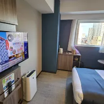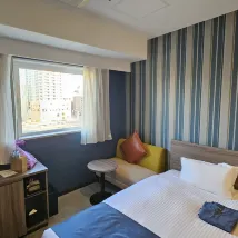 주차장 넓고 할인 QR로 1박 800엔 열리지 않는 창문에 답답함이 있었지만 공기청정기가 있어서 좋고 비오는날 우산 무료 및 신발건조기까지 있어서 최고였어요. 그리고 최고의 조식! 매일 매일 메뉴가 바껴서 정말 조식 꼭 드세요. 우유는 1일 1병 필수! 직원들 친절합니다. 청소는 3박 이상만 가능한것 같아요... 오히려 요즘 매일 청소 안해주는게 더 편하더라고요.