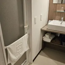 2박을 했고, 조식을 추가할 수 있는지 물어보려고 프런트에 갔음. “헬로우”, “곰방와”라고 인사했지만, 직원은 인사도 없이 손바닥으로 좌우 가리키며 “체크인, 체크아웃”라고만 함.