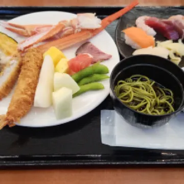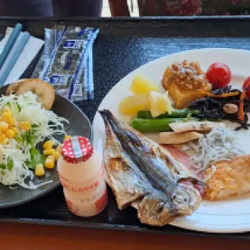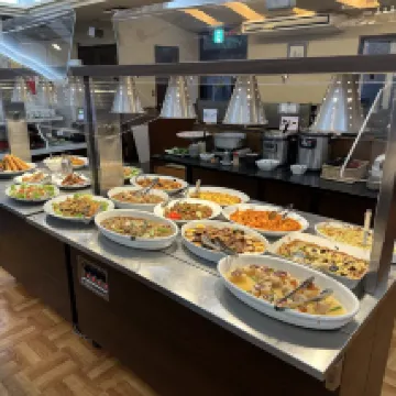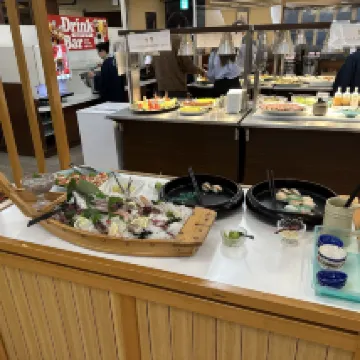 아침과 저녁 모두 매우 풍성한데, 특히 저녁 식사에는 사시미 뷔페가 제공됩니다. 다만 식사시간이 매우 고정되어 있고, 소요시간도 길지 않으므로 여행 일정을 계획할 때 주의가 필요합니다.