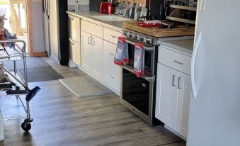 As a guest, you'll enjoy the convenience of free WiFi, a washing machine and dryer, and a smart TV with satellite/cable channels, ensuring you have all the comforts of home. The fully stocked kitchen, complete with a stove, oven, refrigerator, grill, microwave, dishwasher, coffee maker, and more, Allows you to prepare delicious meals during your stay. Or simply a takeout meal from any one of the many close restaurants and enjoyed by the large private fire pit.