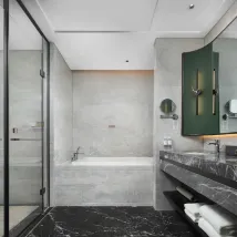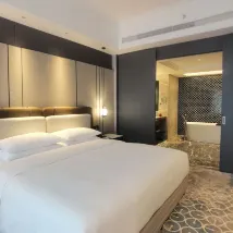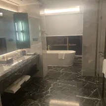 시설: 호텔은 새로 리모델링되어 모든 시설이 새것처럼 깨끗해서 아주 좋은 경험을 선사합니다. 욕조도 매우 넓은데, 트레이가 있으면 더 좋을 것 같습니다. 그렇지 않으면 휴대폰을 놓을 공간이 없을 테니까요. 침대는 슈퍼 킹사이즈 침대가 아니라 1.8m x 2m 크기의 일반 침대처럼 느껴집니다.