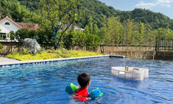 很愉快的一次住宿體驗,看得出店主是非常用心經營。民宿在山裡,自駕的話還是非常好找的,空氣很清新,車子開到車庫有電梯直達,户外泳池很乾凈孩子們玩的很開心~早飯也很豐盛,店主看到我們帶孩子主動多加了份額,還説帶孩子們去溯溪,臨走還給我們準備了小禮品,非常滿意