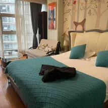 우리는 듀플렉스 킹사이즈 룸을 예약했는데, 사장님이 룸 타입을 업그레이드해 주셨습니다. 19층 웨스트레이크 전망은 낮이든 밤이든 아름답고, 전망이 훌륭합니다. (서호수에 너무 가까운 1층 주택은 전망이 나쁩니다.) 냉장고와 세탁기를 모두 사용할 수 있어 매우 편리하고 집과 같은 느낌이 듭니다. 서호에서 도보로 불과 1km 거리에 있으며, 우산 야시장이 문 바로 밖에 있습니다. 또한 주변에서 저녁과 아침 식사를 하는 것도 매우 편리합니다. 투어 그룹에 가입할 경우, 만나는 장소가 매우 길고, 투어 그룹이 대개 집 앞에서 여러분을 픽업한다는 점을 언급하는 것이 좋습니다.