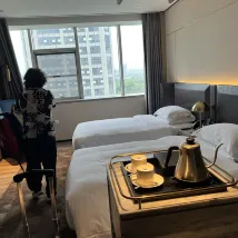 전반적으로 만족스러웠고, 서비스도 훌륭했어요. 이번 항저우 방문은 남자농구 평가전을 보기 위한 것이었는데, 이 호텔에 묵는 것은 처음이었어요. 체크인 시간보다 일찍 도착해서 예약 시 가능했던 룸 업그레이드는 받지 못했지만, 프런트 데스크 직원분께서 다음 방문 시에는 업그레이드를 도와주겠다고 친절하게 말씀해주셨어요. 배정받은 방은 중간층에 있었는데, 꽤 괜찮았어요. 호텔은 지하철역에서 몇 백 미터 정도 거리에 있어 도보로 이동하기 편리했고, 바로 옆에는 싱광따다오(星光大道)가 있었어요. 다음번에 항저우에 오게 된다면 꼭 다시 이 호텔을 이용할 거예요!!!
