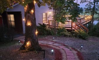 Escape to our Tennessee River cabin, a haven for 8 guests. Enjoy stunning views from the spacious patio, perfect for outdoor dining. Unwind in the backyard under enchanting string lights or cozy up on the front porch bench by the fire pit. Ideal for nature lovers, our retreat offers tranquility and occasional eagle sightings. Fish for catfish and bluegill or go hunting nearby. Whether you're seeking a peaceful weekend getaway, a family gathering, or an outdoor adventure, our cabin provides the perfect blend of comfort and natural beauty. Experience the serenity of country living with modern amenities. Book now for an unforgettable stay in Tennessee's picturesque landscape!About pets:No pets allowed.About checkOut:Check out before 11:00 AM.About children:Children allowed: ages 3-17.About customRules:Firepit + BBQ- When lighting the fire pit, cover the fire with the metal mesh covering. It will stop any embers from possibly causing a brush fire..Dirty Towels