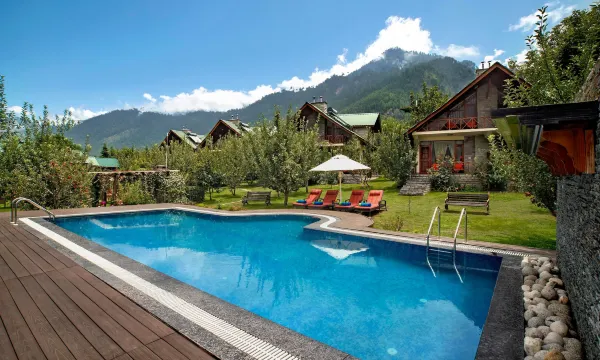 위치: 호텔은 Manali 근처의 아름다운 자연 환경에 위치해 있으며, 평화롭고 조용한 분위기를 제공합니다.