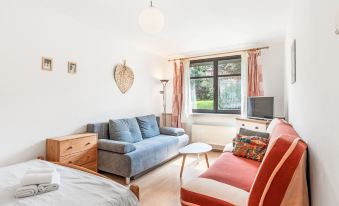 Apartment block "Nový Svět 562", 700 m a.s.l.. 500 m from the centre of Harrachov, 800 m from the skiing area. Parking at the house. Supermarket 300 m, restaurant, bar, café 100 m, bus stop "sklárna" 600 m, railway station "Harrachov" 3.5 km. Tennis 1.5 km, minigolf 1.1 km, ski rental 600 m, ski bus stop 600 m, ski school 600 m, cross country ski track 300 m. Nearby attractions: Mumlavský vodopád 3 km, Šindelka 2 km, Ski muzeum 2 km, Hornické muzeum 2.6 km, Harrachovské rybníčky 2.5 km, Bobová dráha 1.1 km. Well-known ski regions can easily be reached: Harrachov 2 km, Ski area Hilbert 1 km, Zákoutí 2 km. Hiking paths: Dovoračky 8.5 km, Labská bouda 13 km, Vosecká bouda 10 km. HARRACHOV CARD guest card included in the price. "Pet Friendly Nest", 1-room apartment on the ground floor. Practical furnishings: 1 room with 2 double sofabeds, 1 double bed, satellite TV and gas heating. Kitchen (2 hot plates, toaster, kettle, microwave) with dining table. Shower/WC. Heating. Facilities: Internet (WiFi). Parking. Suitable for families. Maximum 1 pet/ dog allowed.