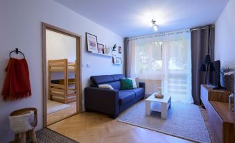 Apartment block "Harrachov 377". 800 m from the centre of Harrachov, in a quiet, sunny position. In the house: central heating system. Parking at the house. Supermarket 500 m, restaurant, café 200 m, bus stop "Sklárna" 300 m, railway station "Harrachov" 3 km. Minigolf 1.5 km, ski rental 200 m, ski bus stop 200 m, ski school 1.5 km, cross country ski track 1 km. Nearby attractions: Mumlavské vodopády 3 km, Šindelka 2.5 km, Ski muzeum 2.5 km, Sklárna Novosd a syn a pivovar 200 m, muzeum skla 200 m, bobová dráha 300 m. Well-known ski regions can easily be reached: Harrachov 2 km, Rokytnice n/J 17 km, Paseky n/J 13 km. Hiking paths: Vosecká bouda 12 km, Dvoračky 10 km, Labská bouda 15 km. "Cozy Family Getaway", 3-room apartment 65 m2. Renovated in 2022, modern furnishings: 1 room with 1 double bed (160 cm, length 200 cm). 1 room with 1 x 1 bunk beds, 1 pull-out bed. Living room with 1 sofabed and TV. Exit to the balcony. Kitchen (oven, dishwasher, 4 induction hot plates, kettle, freezer, electric coffee machine, Capsules for coffee machine (Dolce Gusto) extra). Shower, sep. WC. Facilities: washing machine, children's high chair. Internet (WiFi). Please note: suitable for families. Non-smokers only. Harrachov card free.