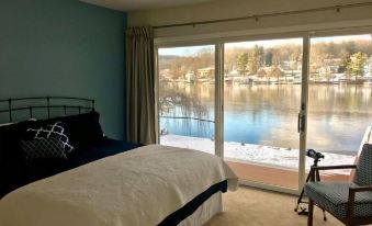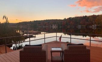 Enjoy the fresh mountain air and gorgeous vistas of Harvey's Lake -- Pennsylvania's largest natural lake, located in the Endless Mountains. In cooler months: snuggle by 2 indoor fireplaces and 2 outdoor fire pits, take in the fall foliage or snow, and hit the ski slopes (Montage Mountain - 30 miles away; Elk Mountain - 45 miles away). Unwind and relax on any of the home's spacious decks and stare at the tranquil waters! Watch your favorite sports or shows on our large screen outdoor TV. Walk/run/bike around the 8.3 miles of paved shoreline; visit nearby orchards/farms and hidden gem restaurants (see our guidebook!); hike nearby Rickett's Glen State Park's scenic Falls Trail (22 waterfalls). Try your luck at local Mohegan Sun Pocono Casino and Racetrack, or indulge in their spa and 17 restaurants. In warm months: Swim, Stand-Up paddle board, kayak or canoe in the lake's beautiful clean water off our 100+ feet of shoreline; launch your boat at the public boat launch and enjoy the home's private boat slip; rent a pontoon boat for the day to see all that the lake has to offer; fish from the private fishing pier; take in weekly sailboat regattas from any of the expertly appointed deck seating areas.About pets:No pets allowed.About checkOut:Check out before 11:00 AM.About children:Children allowed: ages 0-17.About customRules:Falling on property, use of bunk beds, dart board are at guests’ own risk; by booking, you agree to waive any claim against owner for such.Swimming, use of kayak/stand-up paddle board, water trampoline are at guests’ own risk,Town noise ordinance disallows “any excessive noise between the hours of 10pm and 7am”.About checkIn:Check in after 4:00 PM.About smoking:Smoking is not permitted.About minBookingAge:Minimum age to rent: 28.About events:No events allowed.