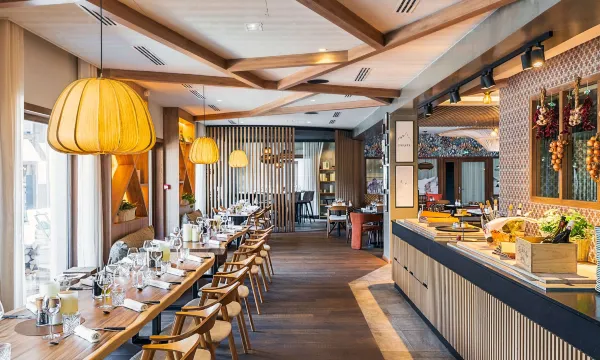 시설 내에 위치한 레스토랑 LE MEZTIVA에서 간단한 식사를 즐겨보세요. 여기에는 다양한 음료가 제공되는 바/라운지도 갖춰져 있죠. 또는 편하게 객실에서 룸서비스(이용 시간 제한)를 이용하실 수 있습니다. 아침 식사(뷔페)가 주중 07:00 ~ 10:00 및 주말 07:00 ~ 10:30에 유료로 제공됩니다.