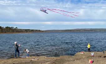 Access to the lake through the woods down to the huge sandstone point. Follow the contour of the lakeside, and you will see a spectacular view unfold as you reach this premium panoramic view. This is the breathtaking peaceful experience you have been seeking! Just a small stroll from the house. I like to bring my yoga mat, a cup of coffee, and watch the sun come up, while I have a fishing line in the water.