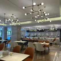 출장으로 자주 묵는 호텔입니다. 호텔 로비가 상당히 웅장합니다. 프론트 직원이 매우 친절하고 모든 요청에 응해주었습니다. 로비에는 음료, 커피, 미네랄 워터가 있는 워터 바도 있습니다. 체크인 시 무료 과일이 제공되며, 엘리베이터 입구에서 셀프서비스로 이용할 수 있는 무료 생수, 무료 세탁 서비스도 제공됩니다. 객실은 조명도 잘 갖춰져 있고 깨끗하고 정돈되어 있어 매우 편안한 숙박이었습니다. 아침 식사는 맛있고 종류도 다양합니다. 개인적으로 가격 대비 성능이 꽤 좋다고 생각합니다.