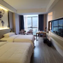 방은 깨끗하고 넓습니다. 창밖으로 봉우리가 보이는 것이 매우 눈길을 끕니다. 로비는 고급스럽지는 않지만 개방적이고 북적입니다. 매트리스와 침구도 깨끗하고 깔끔해요. 호텔 입구에 충전소가 있습니다. 지방정부의 교통투자그룹이 건설한 것으로, 킬로와트시당 1.2위안의 요금을 부과하며, 충전 속도가 매우 빠릅니다. 1포인트로 웰컴 과일을 구매하실 수 있으며, 생수도 호텔 내에서 무료로 이용 가능합니다. 객실 수건에는 일회용 필름이 포장되어 있어 안심할 수 있습니다. 객실에는 손 소독제, 세탁 세제, 헤어 스타일링 젤이 마련되어 있습니다. 호텔은 무료 세탁 서비스도 제공합니다(저희는 해본 적이 없어서 얼마나 좋은지 모르겠습니다). 호텔 조식은 괜찮습니다. 주차는 쉽고 무료입니다. 전체적으로 이 가격, 서비스, 시설 수준에 정성이 가득 담겨있습니다. 비용 효율적입니다.