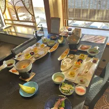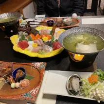 음식은 매우 좋았고 아침과 저녁 모두 넉넉했습니다. 온천에서는 바다 전망과 일출을 볼 수 있습니다. 온천에는 방 수건이 필요하며 탈의실은 상대적으로 작습니다. 객실에서 바다 전망이 약간 차단되고 바로 옆에 물이 있습니다.