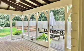 Enjoy a stylish experience at this centrally-located English Tudor minutes to IHFC, all Market Buildings, Highpoint University & the stadium! The Designers Den is in the Emerywood neighborhood. Enjoy relaxing, cooking & gathering in this spacious 2 story home w/4 bedrooms & 2 baths! Two king bedrooms, 1 on the main floor, a full bath on main floor, & 3 bedrooms upstairs w/hall bath! Renovated & bright w/large closets, updated baths, outdoor dining & fire pit! Close to everything & pet friendly!About pets:Pets allowed: limit 3 total.About checkOut:Check out before 11:00 AM.About children:Children allowed: ages 0-17.About customRules:Add pets to reservation and slide bar over where it asks if bringing pets.About checkIn:Check in after 4:00 PM.About smoking:Smoking is not permitted.About minBookingAge:Minimum age to rent: 25.About events:Events allowed: family gatherings and birthday parties.Maximum event attendees: 20,Event fee for the event ranges from $250 to 750.