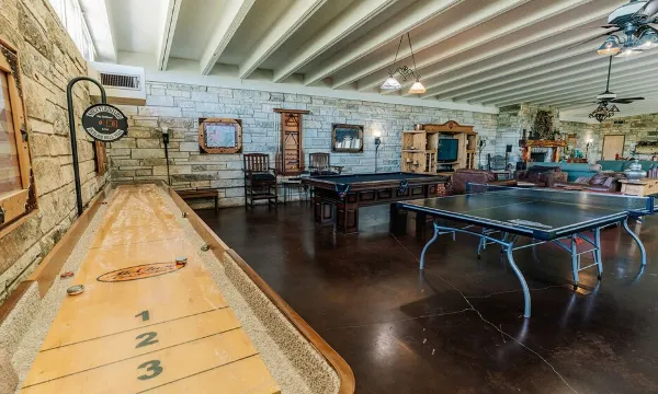 Great for multiple families! Cedar Creek Ranch is your own private paradise on the eastern shores of Lake Whitney with its own private pool. It features beach and lake access directly behind the 14 acres upon which it is located and it just minutes from White Bluff Resort and Golf Course. The ranch is decorated in luxurious southern style throughout and has everything you could possibly imagine for the ultimate entertainment both indoors and outdoors. Cedar Creek Ranch is the perfect location for family vacations, reunions and corporate retreats. Brand new pool built in 2023 and new and improved outdoor kitchen in spring 2024.About pets:Pets allowed: dogs and cats less than 50 lbs per pet (limit 2 pets total).About checkOut:Check out before 11:00 AM.About children:Children allowed: ages 0-17.About checkIn:Check in after 4:00 PM.About smoking:Smoking allowed: in designated areas.About minBookingAge:Minimum age to rent: 25.About events:Events allowed: family gatherings, birthday parties, weddings.Maximum event attendees: 25,Will allow more guests for additional fee..